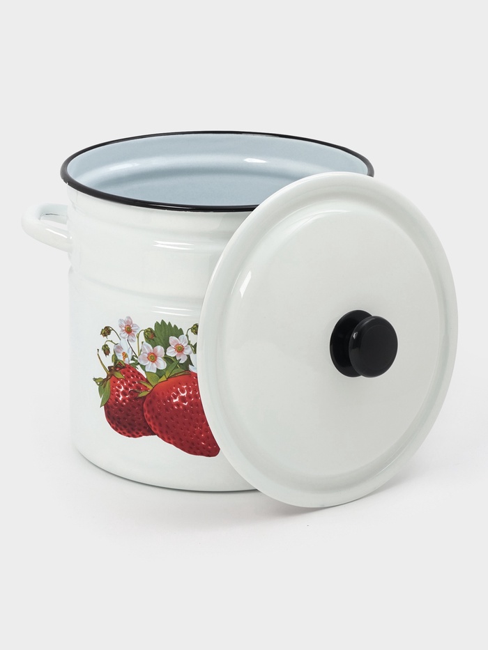 Простая форма — максимальная польза. Цилиндрическая эмалированная кастрюля 12 л с крышкой — это посуда для готовки без лишних изгибов и уступов. Белая эмаль, аккуратный рисунок и крышка из того же материала делают её удобной на плите, в холодильнике и при хранении.