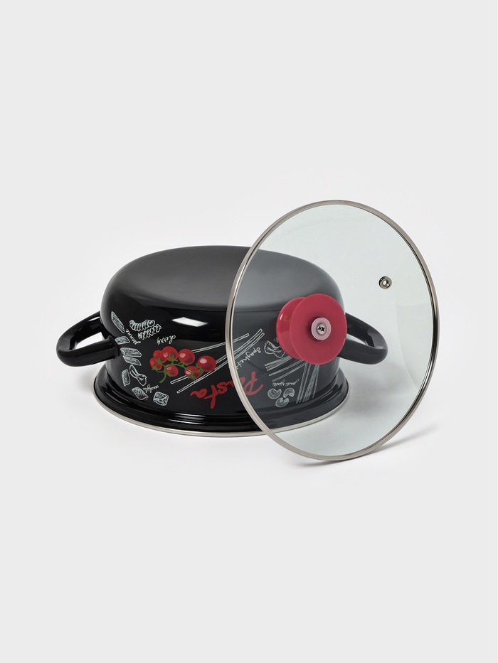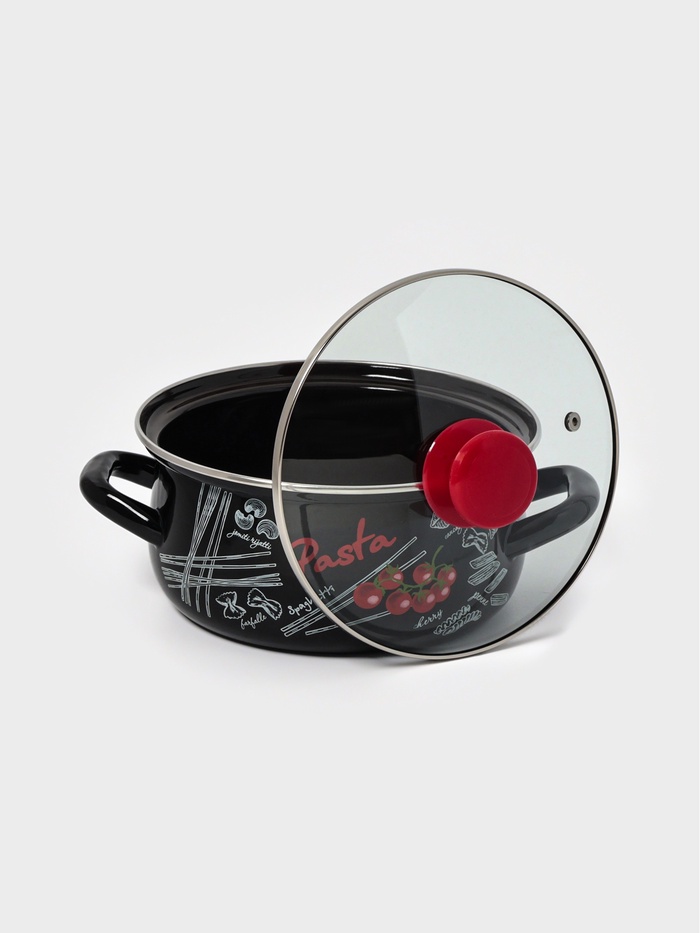 Эмалированная кастрюля на 2 л в чёрном цвете — это надёжная посуда с выразительным узором, созданная для повседневной готовки и долгой службы. Контрастный внешний вид, который не теряется на фоне современной кухни и создаёт особое настроение.