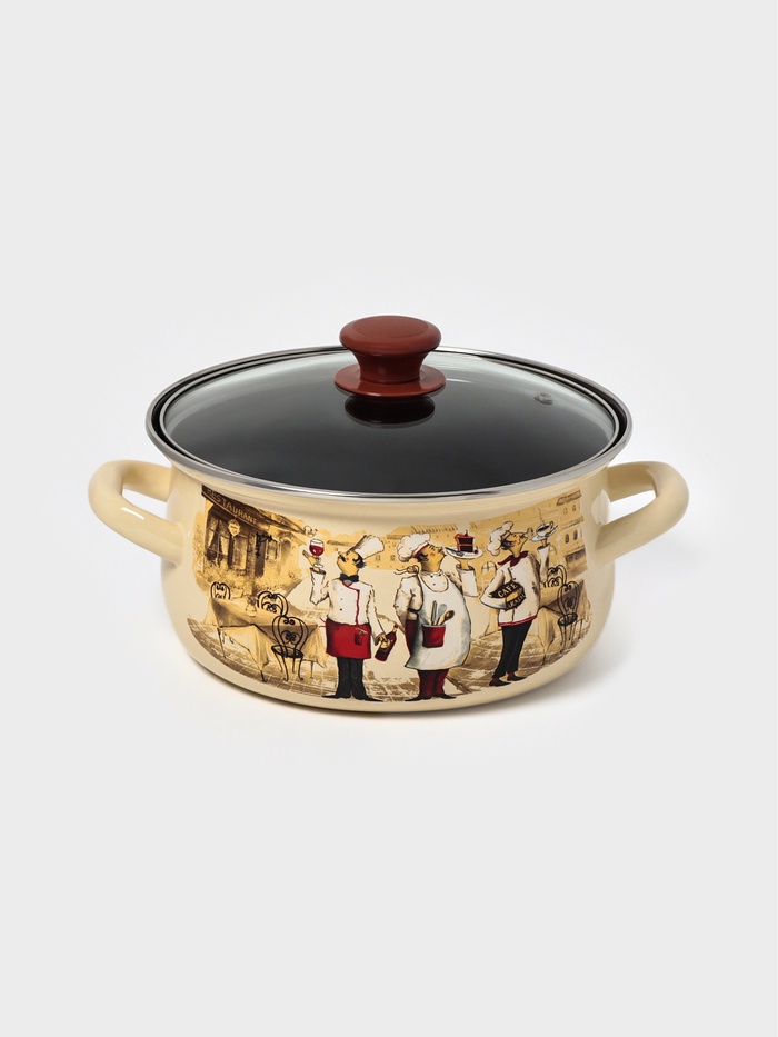 Кастрюля из эмалированной стали на 3 л — это практичная посуда с утончённым рисунком, созданная для повседневных блюд и особых моментов на кухне. Её нейтральный оттенок вписывается в любой интерьер.