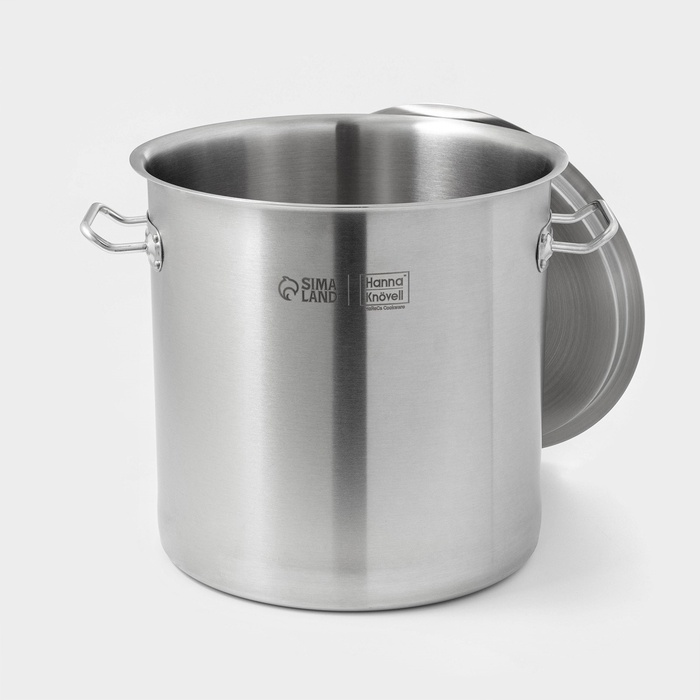 Кастрюля Hanna Knövell HoReCa, 30 л, толщина 0.8 мм, 201 сталь, дно 3.2 мм, с крышкой, с теплораспределительным слоем, индукция, нержавеющая сталь