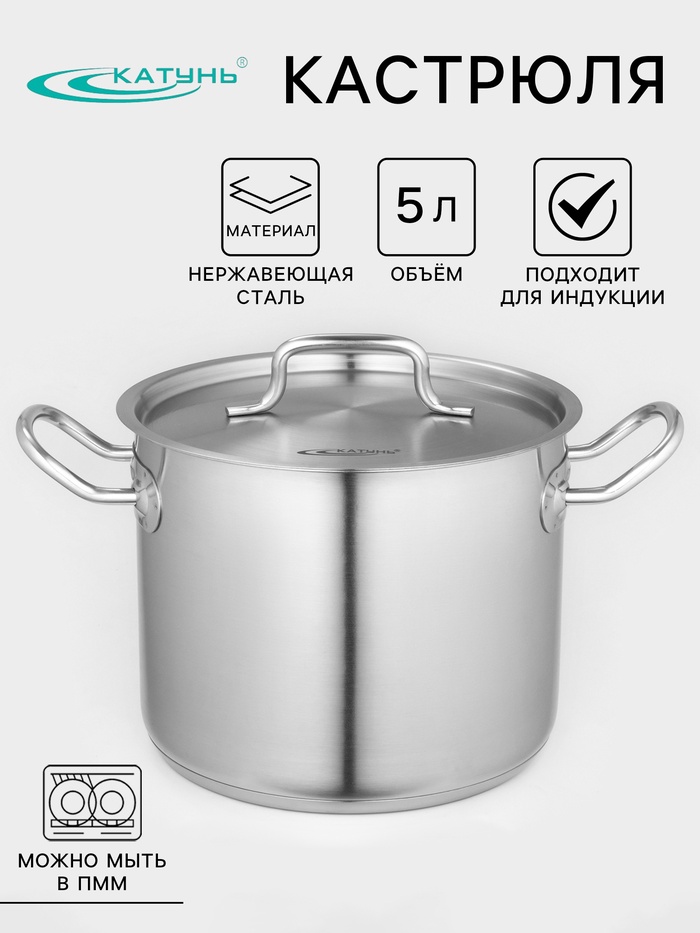 Кастрюля Катунь «Общепит», 5 л, d=20 см, h=16 см, капсульное дно, индукция, нержавеющая сталь