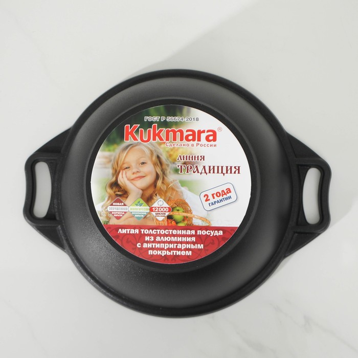 Продукция Kukmara изготовлена из литого алюминия и покрыта немецким высококачественным антипригарным покрытием на водной основе, усиленным сверхпрочными минеральными частицами.