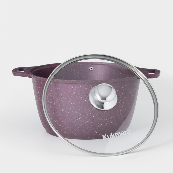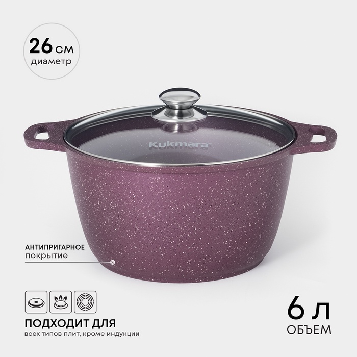 Кастрюля KUKMARA Trendy style, 6 л, d=26 см, h=15.5 см, антипригарное покрытие, стеклянная крышка, литой алюминий, фиолетовая