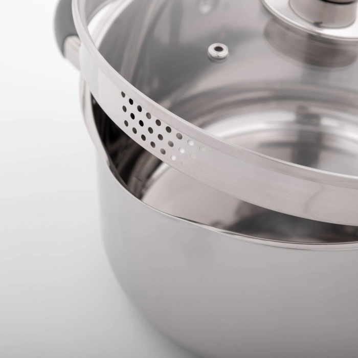 Кастрюля Magistro Tefida, 4.6 л, AISI - 201, крышка-дуршлаг, носик для слива, капсульное дно, с крышкой, индукция, нержавеющая сталь