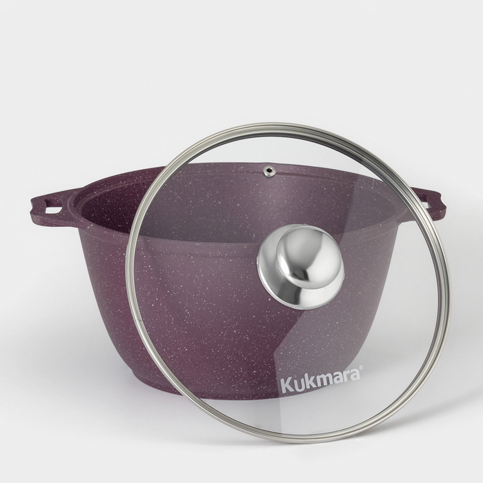 Посуда линии Trendy style разработана в соответствии с последними модными тенденциям. Кастрюля Kukmara сделана из литого алюминия, с внутренней и внешней стороны — антипригарное покрытие увеличенной прочности, изготовлено на водной основе по немецким технологиям.