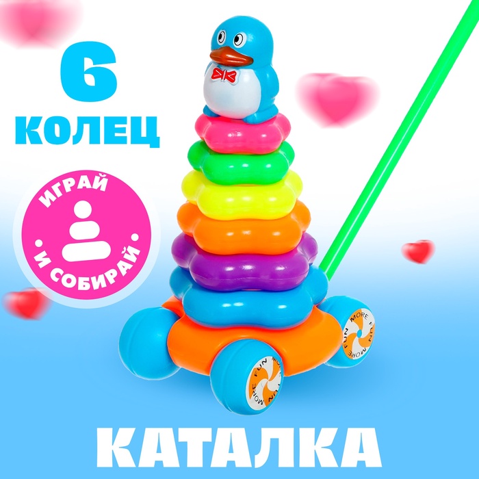 Каталка-пирамидка в форме пингвина станет отличной игрушкой для малышей от 3 месяцев. Она объединяет два функционала — пирамидку для развития моторики и каталку, которая побуждает ребёнка двигаться. Это универсальное решение для раннего возраста, которое надолго займёт малыша.