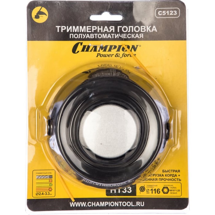 Катушка для триммера CHAMPION HT33, 2.4-3.3 мм, М10х1.25 мм, левая резьба, быстрая заправка 107168