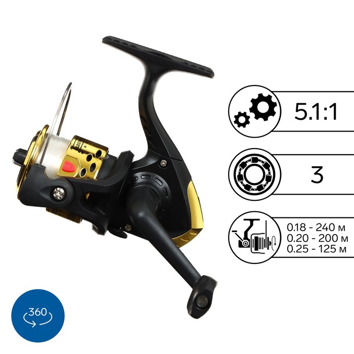 Катушка оснащённая BH200, пластиковая шпуля (3ВВ; 5,1:1), цвет: золото