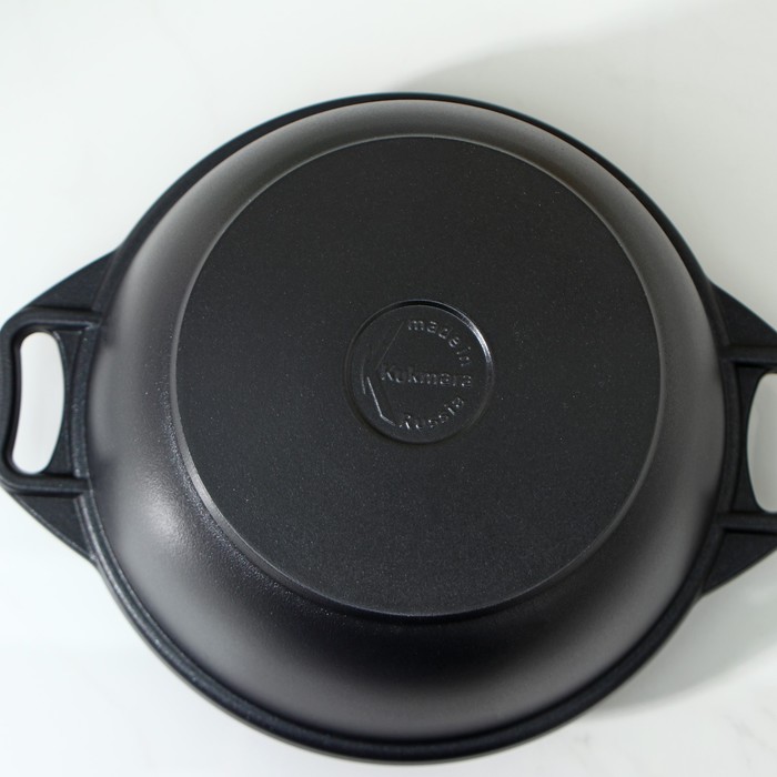Продукция Kukmara изготовлена из литого алюминия и покрыта немецким высококачественным антипригарным покрытием на водной основе, усиленным сверхпрочными минеральными частицами.