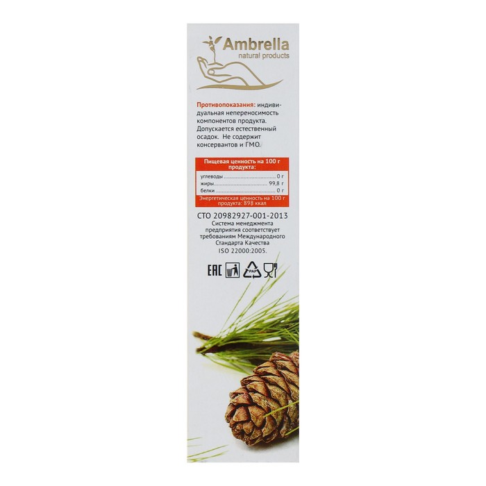 Состав: масло кедровое — 70 %, живица кедровая — 30 %.