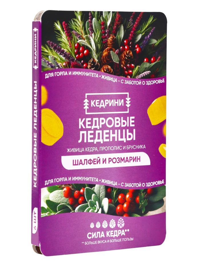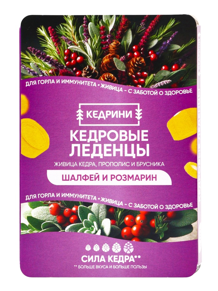 Кедровые леденцы Kedrini — это натуральное сочетание полезных компонентов и мягкого сладкого вкуса, созданное для заботы о здоровье горла и верхних дыхательных путей. Каждая леденцовая конфета содержит натуральный кедровый экстракт, а также экстракты шалфея и розмарина, что делает продукт не только вкусным, но и функциональным.