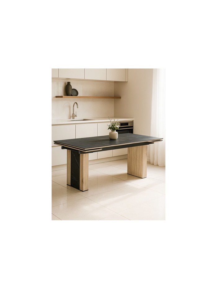 Керамический стол Бернардо 180x90 черный мрамор / дуб монтана