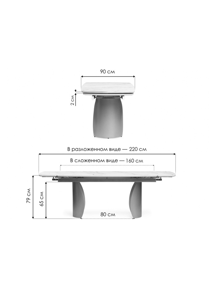 Керамический стол Вилли 120(180)х80 сarmen light grey / черный