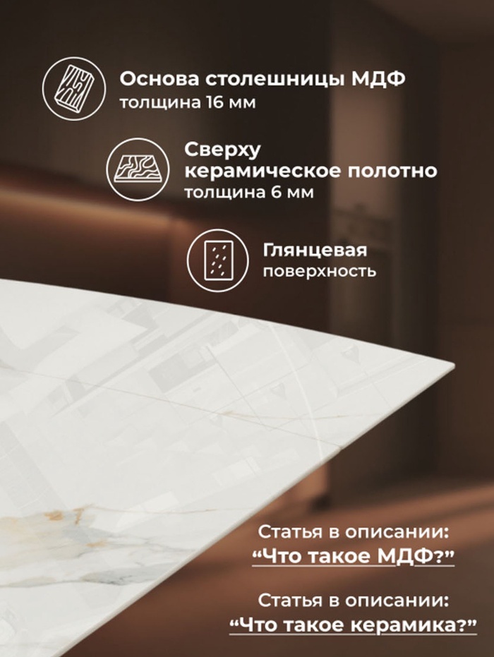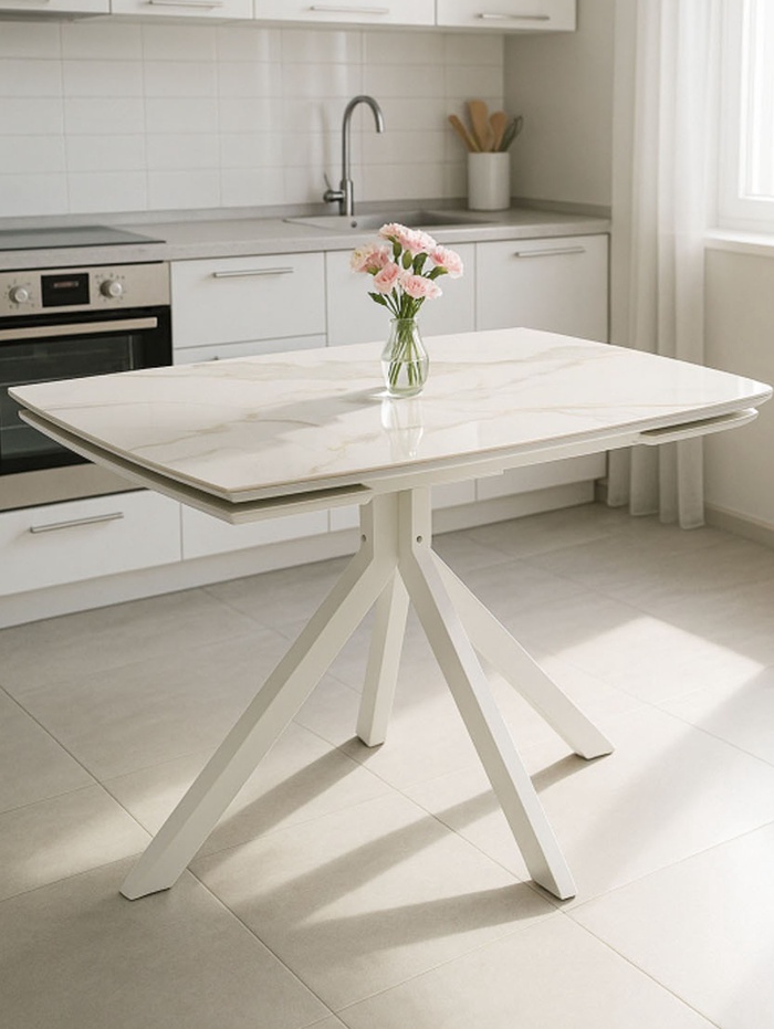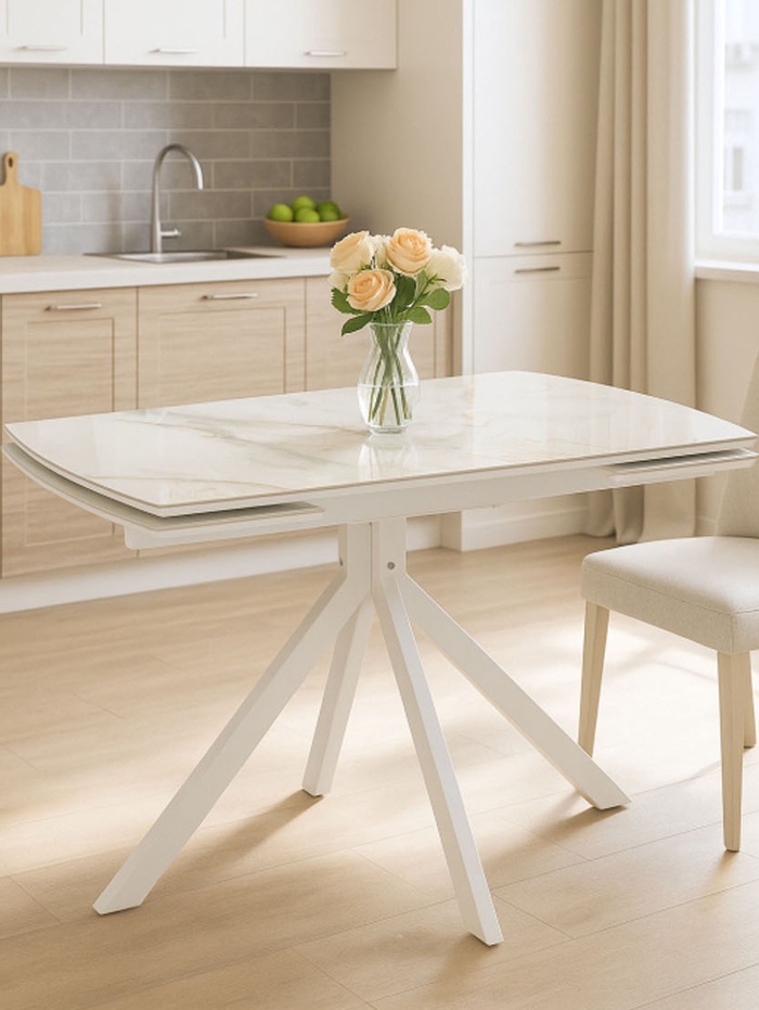Керамический стол Катчел 120(180)x80 calacatta gold / белый