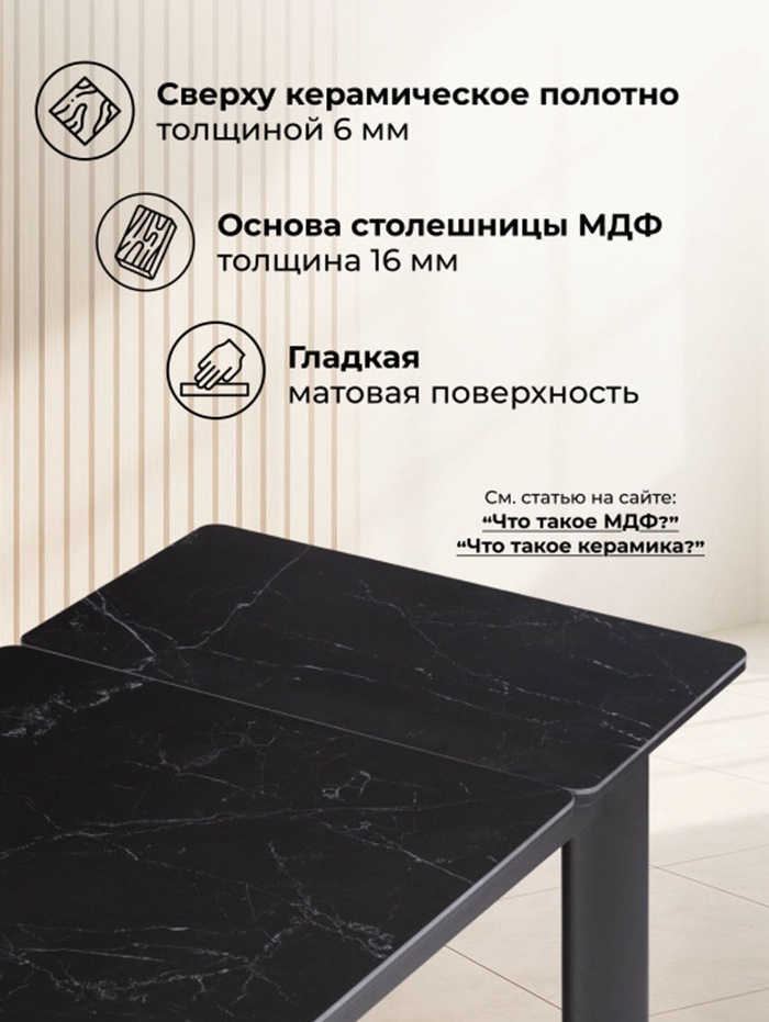 Керамический стол Кина 90(130)х65х76 shakespeare black / черный