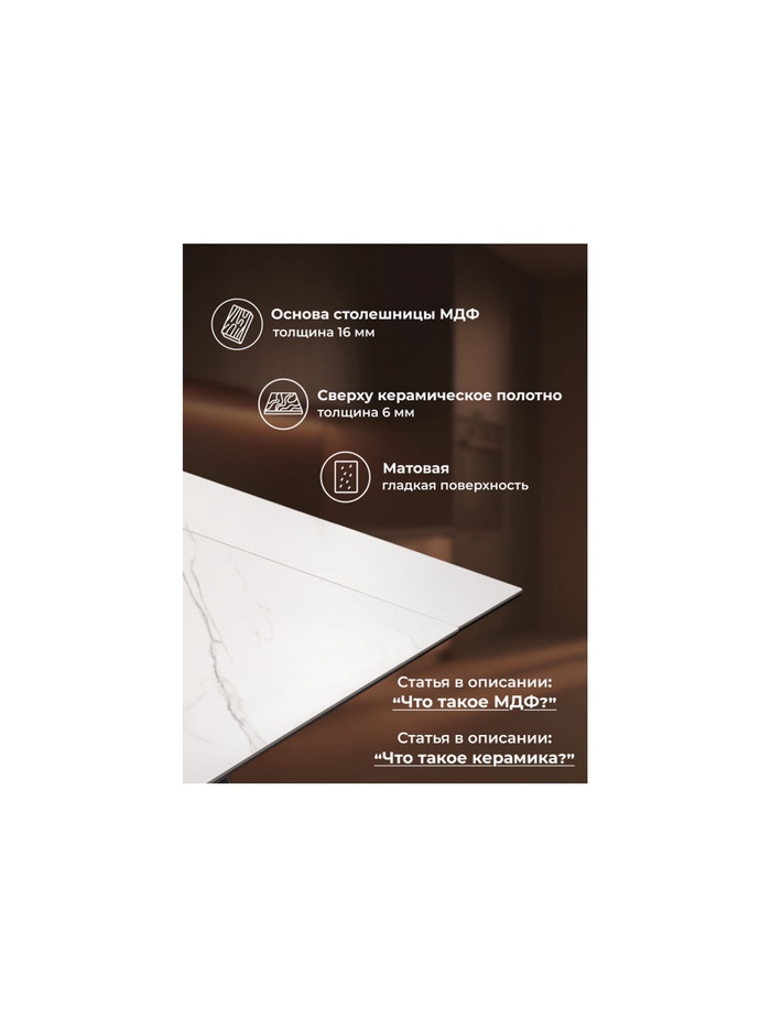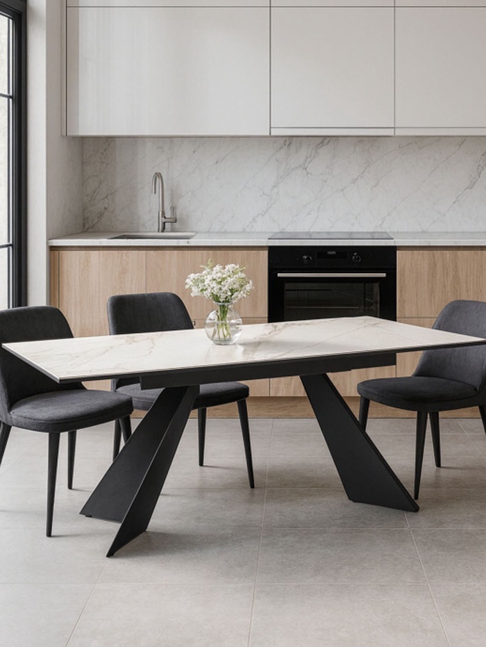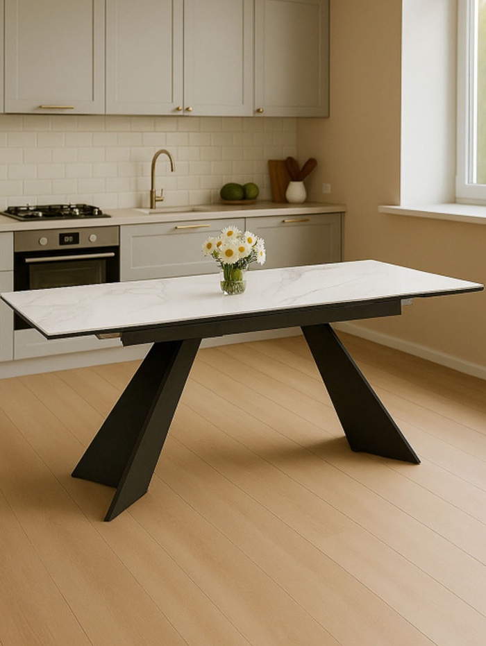 Керамический стол Ливи 140(200)х80х78 белый мрамор / черный