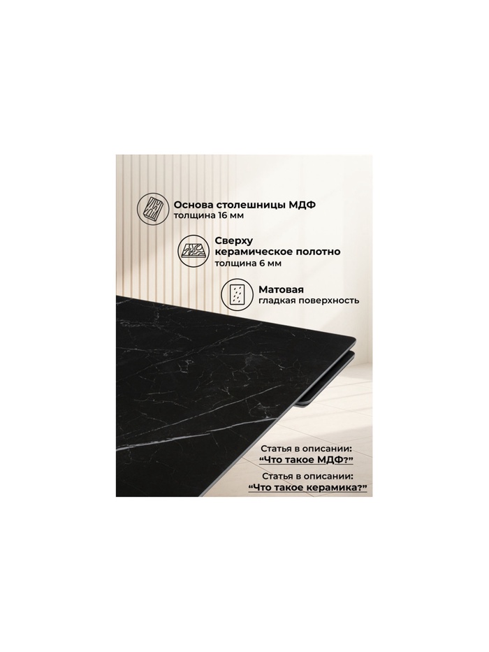 Керамический стол Мэриан 120(180)х80 shakespeare black / черный
