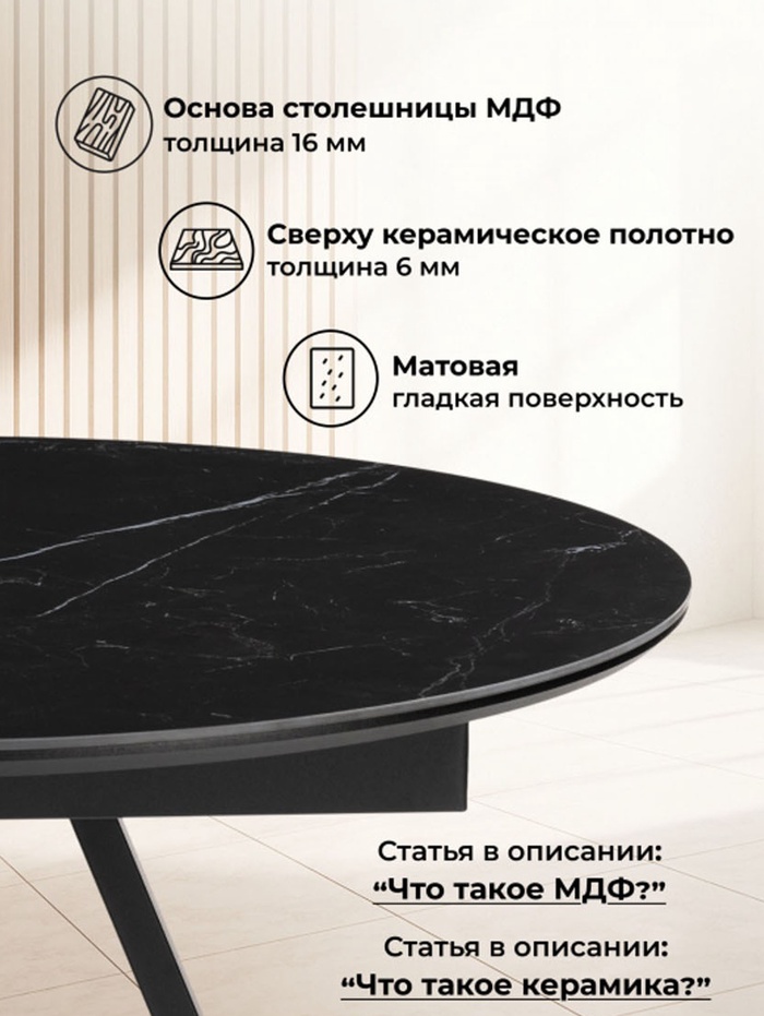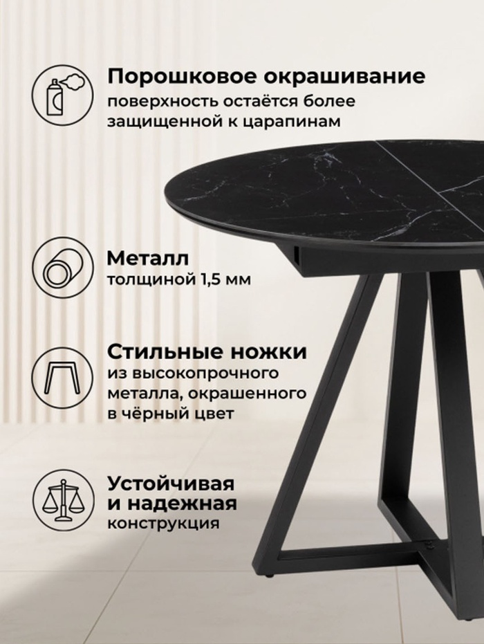 Керамический стол Нельсон 100(140)х100х76 shakespeare black / черный