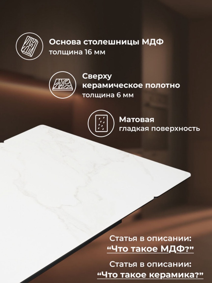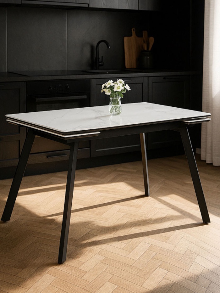 Керамический стол Норман 140(200)х80х75 белый мрамор alpin white / черный