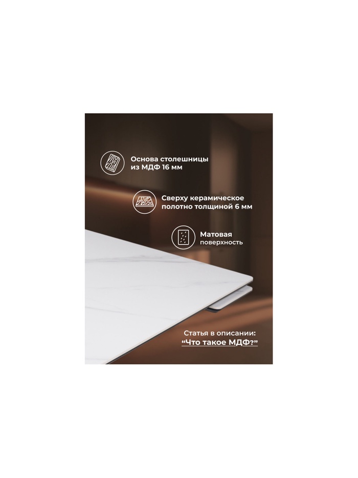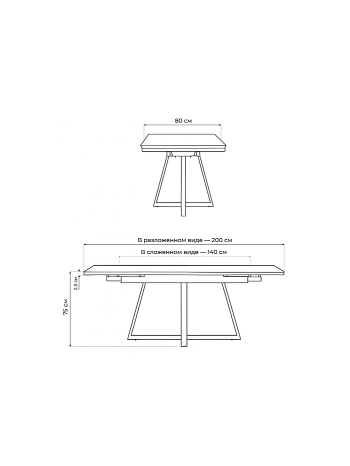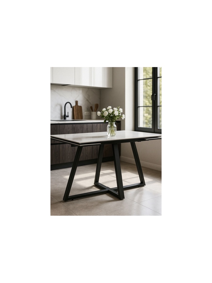 Керамический стол Памелла 140(200)х80х75 белый мрамор snow white / черный