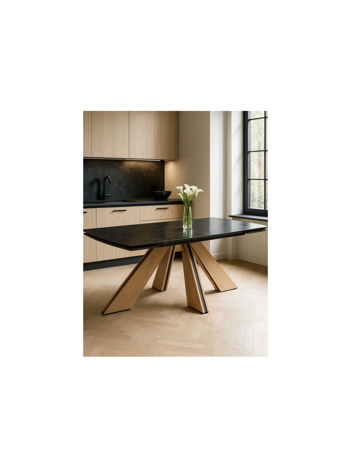 Керамический стол Шаннон 180(240)х90х79 черный мрамор / дуб монтана