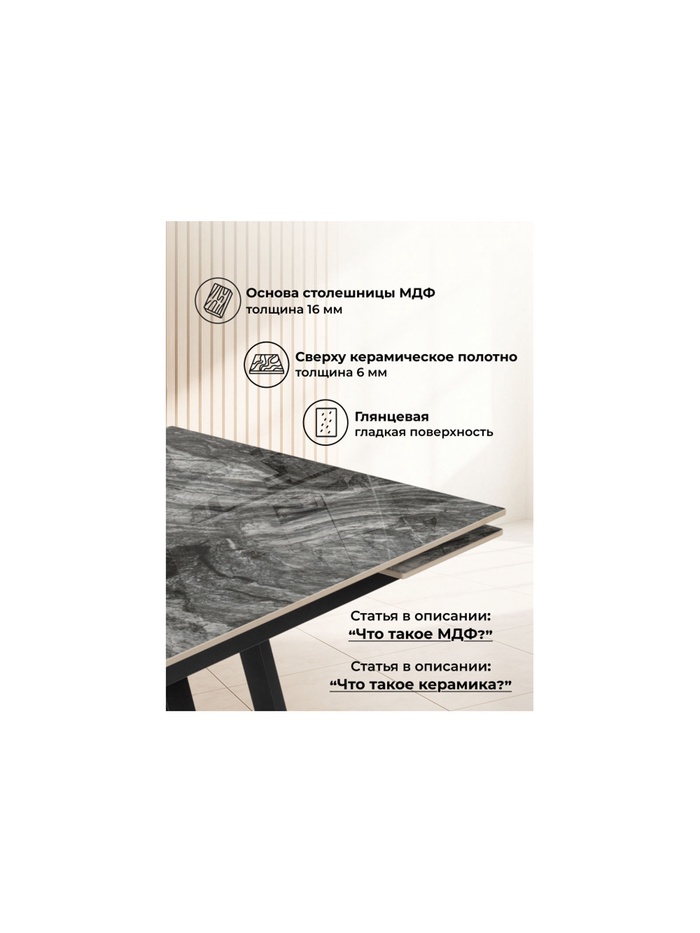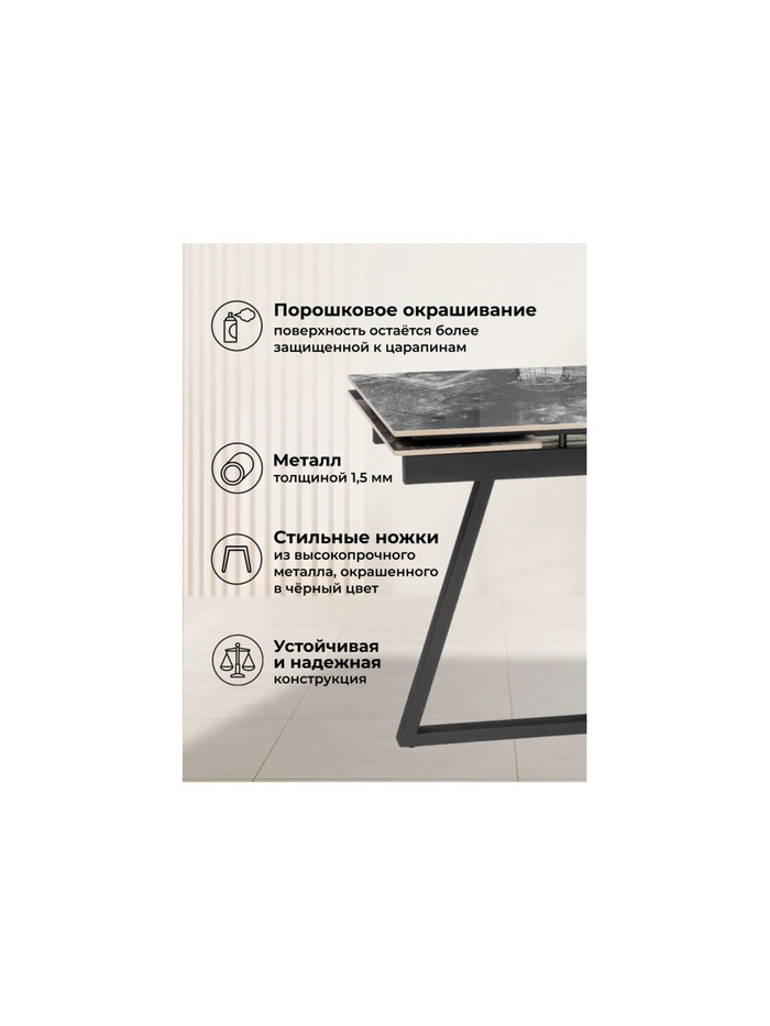 Керамический стол Силлем 120(180)х80 риальто серый темный / черный