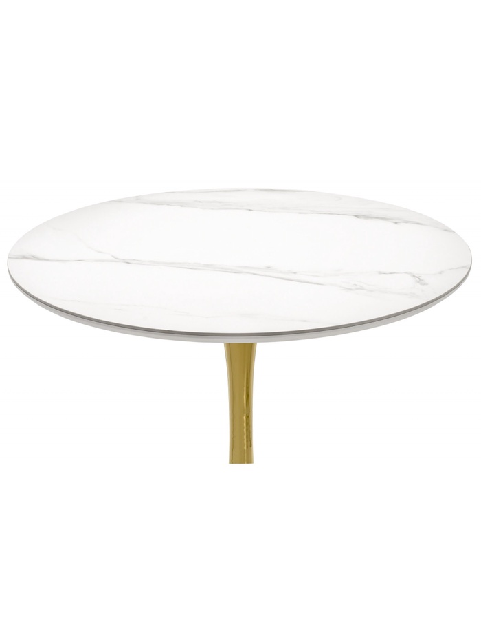 Керамический стол Тулип 90х73 белый мрамор / золото