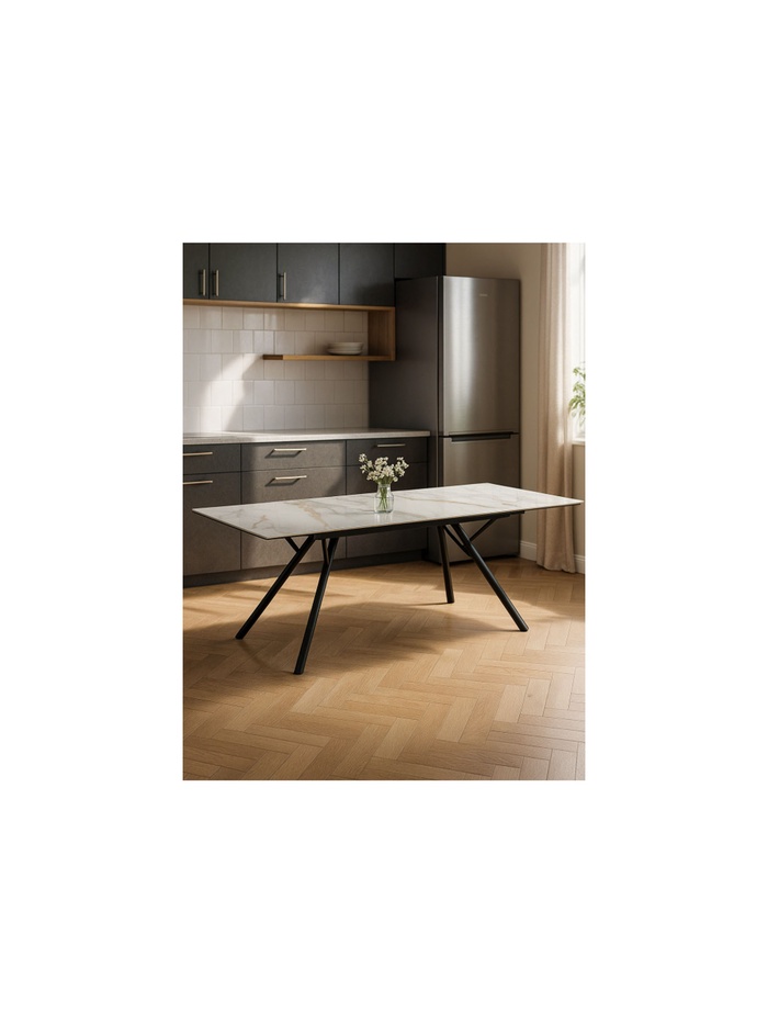 Керамический стол Вилли 140(200)х80 белый мрамор snow white / черный