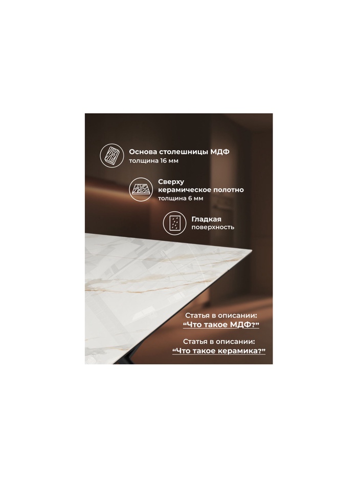 Керамический стол Ворен 180(240)x90 calacatta gold / черный