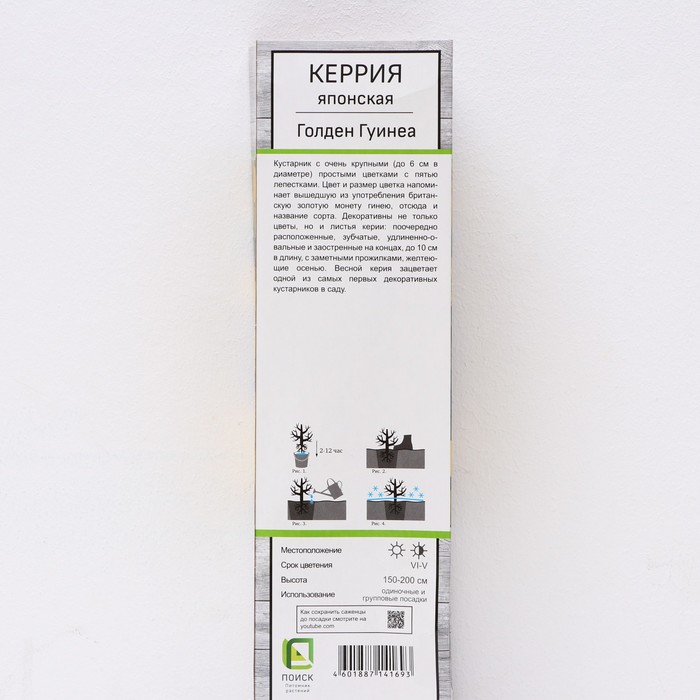Саженцы японской керрии Голден Гуинеа (Kerria japonica) радуют первыми цветами во второй половине мая. В теплых регионах зацветают немного раньше. Кустарник вырастает до 2,5 м в высоту. Его побеги раскидистые, декоративные.