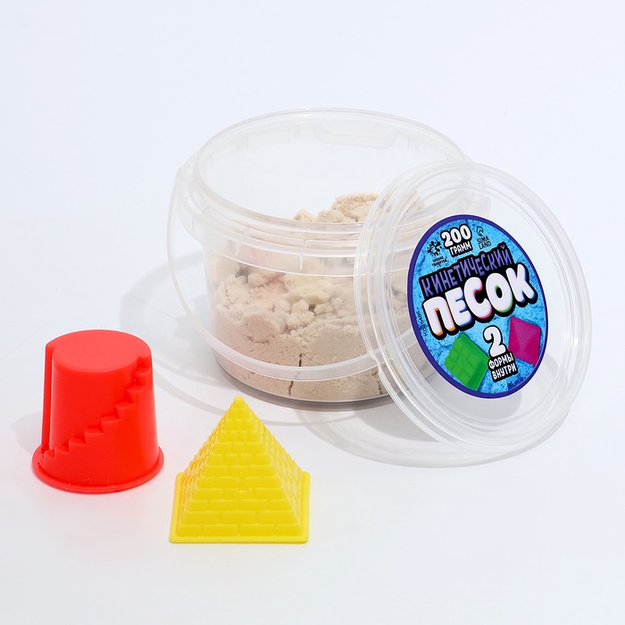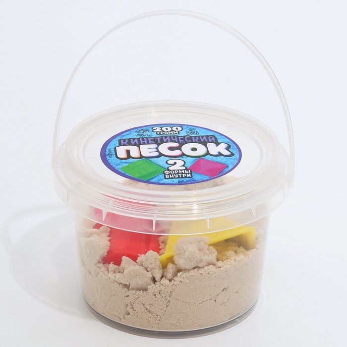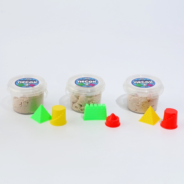 - В комплекте с песком в ведёрке идут 2 формочки для лепки.