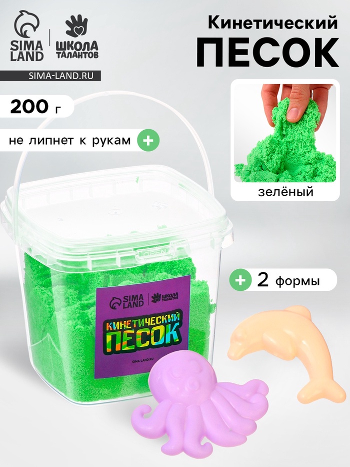 Кинетический песок, 2 формочки, 200 гр, цвет зелёный
