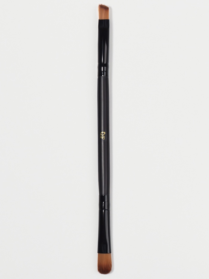 Двусторонняя универсальная кисть средней жёсткости подходит для работы с сухими, жидкими, кремовыми и гелевыми текстурами. Она мягко распределяет косметику, растушёвывает границы и заполняет веко цветом.