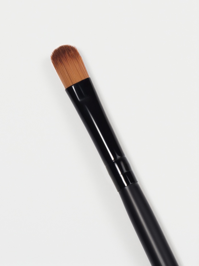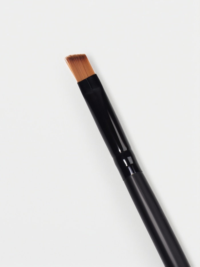 Скошенная кисть имеет плотный ворс, подходит для окрашивания бровей и нанесения различных кремовых составов. Например, может применяться при ламинировании.