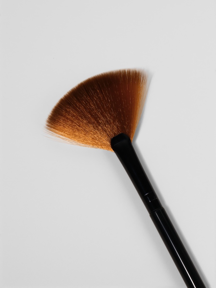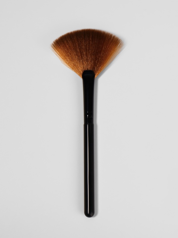 - Веерная форма помогает убирать излишки пудры или аккуратно наносить продукт на лицо.