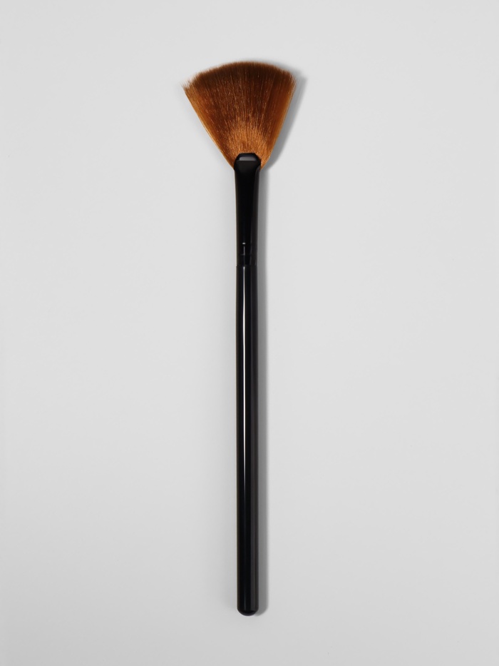 - Профессиональный результат: веерная форма идеально подходит для работы с рассыпчатыми текстурами, помогая создавать лёгкий и естественный финиш.