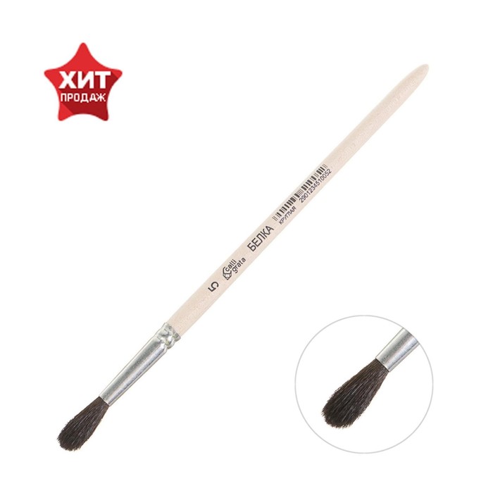 Кисть для рисования, Белка круглая № 5 (диаметр обоймы 5 мм; длина волоса 20 мм), деревянная ручка, Calligrata