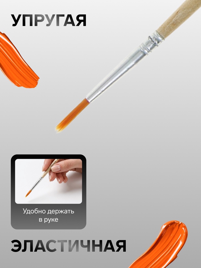 - Упругая синтетическая щетина: нейлоновый ворс равномерно распределяет краску и легко очищается после использования. Кисть сохраняет эластичность при работе с разными типами красок.
