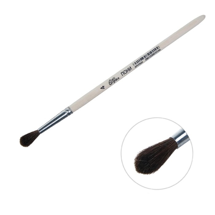 Кисти из волоса пони - это качественная альтернатива беличьим кистям. Ворс средней жёсткости, достаточно упругий и мягкий, подходит для работы с акварелью, гуашью и темперой. С помощью такой кисти легко накладывать мазки краски. Соотношение цены и качества сделало изделия из волоса пони одними из самых востребованных для детей школьного возраста. Ручка изготовлена из берёзы. Цельнометаллическая никелированная бесшовная обойма обеспечивает надёжное соединение ручки и волосяного пучка.