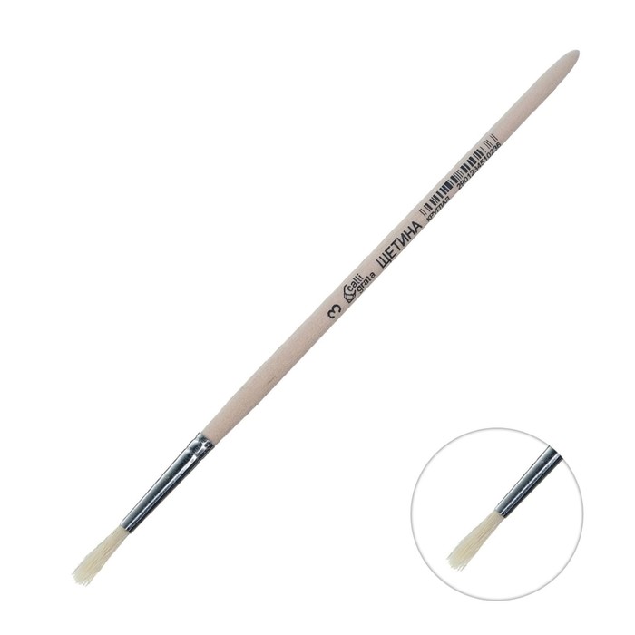 Кисть для рисования, Щетина круглая № 3 (диаметр обоймы 3 мм; длина волоса 16 мм), деревянная ручка, Calligrata