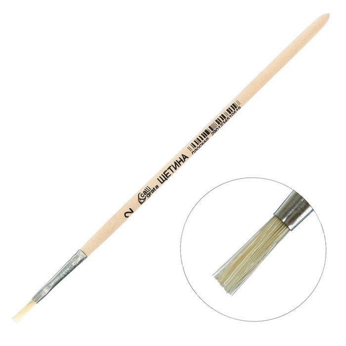 Кисть для рисования, Щетина плоская № 2 (ширина обоймы 2 мм; длина волоса 10 мм), деревянная ручка, Calligrata