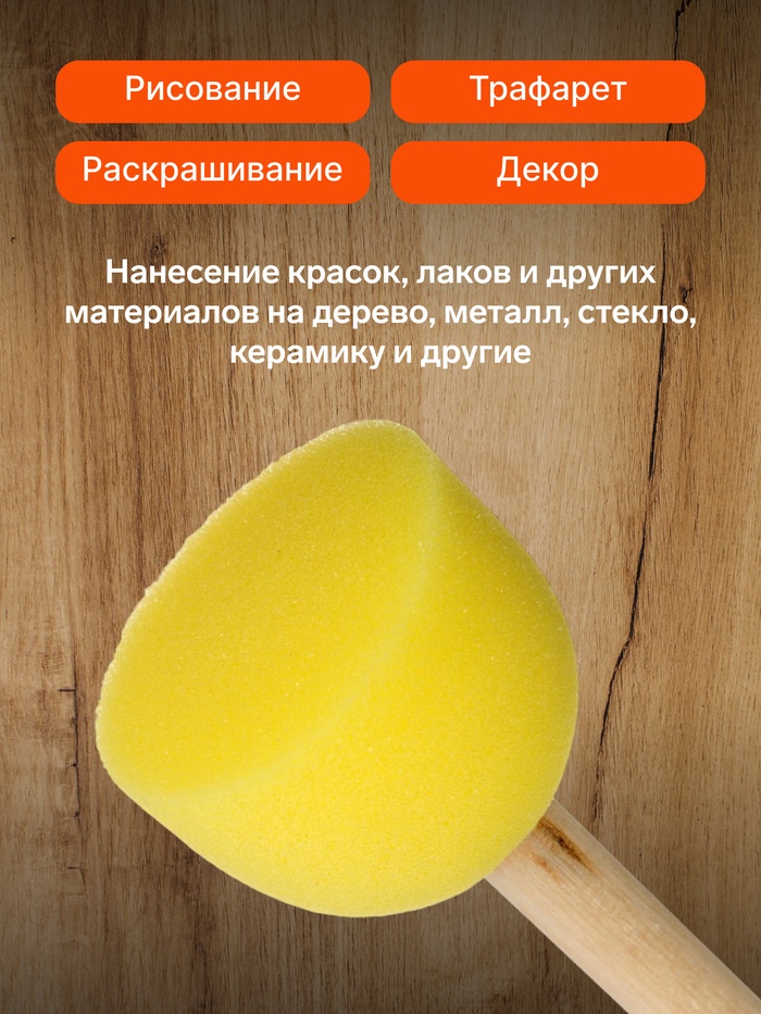 - Мягкая поролоновая поверхность: материал равномерно распределяет краску, создавая плавные переходы между цветами. Спонж подходит для работы с акриловыми красками и гуашью.