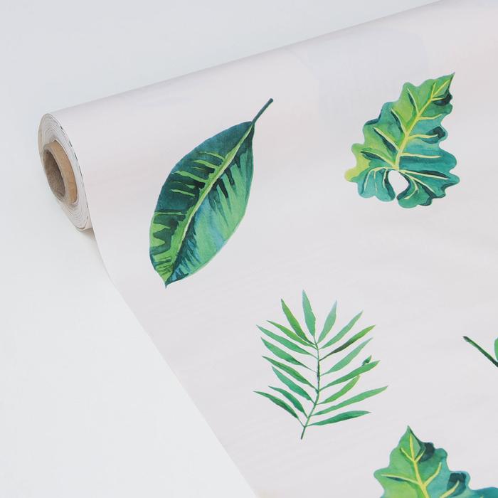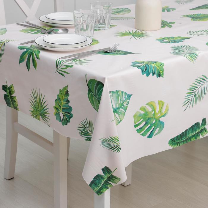 Клеёнка на стол Доляна «Тропики», на тканевой основе, рулон 20 м, ширина 137 см, общая толщина 0.22 мм, белая