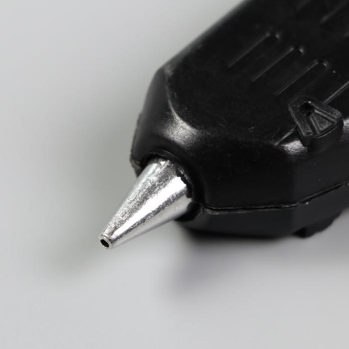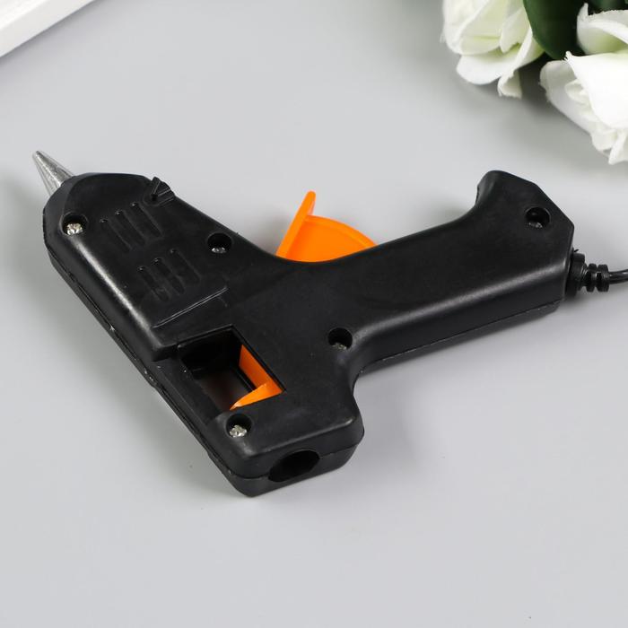 Клеевой пистолет для творчества не рассчитан на долгие работы. Подходит для приклеивания декора, маленьких деталей, склеивания бумаги. Рекомендуем держать его включённым максимум 3–5 минут, затем выключать до полного остывания. Для долгих работ лучше использовать профессиональный клеевой пистолет.