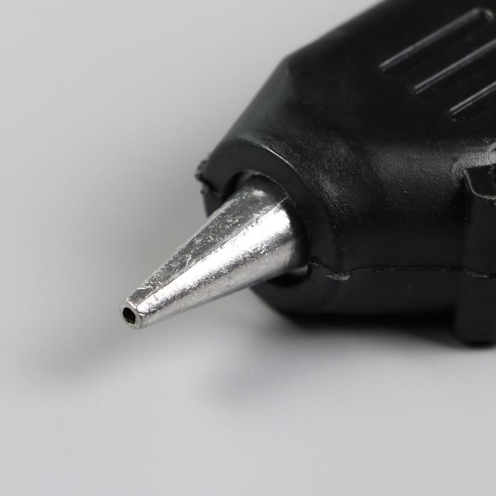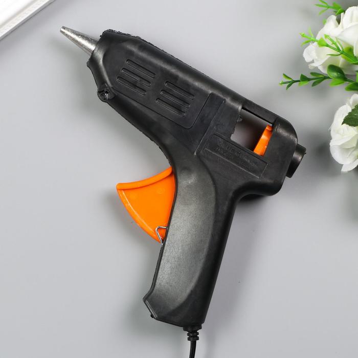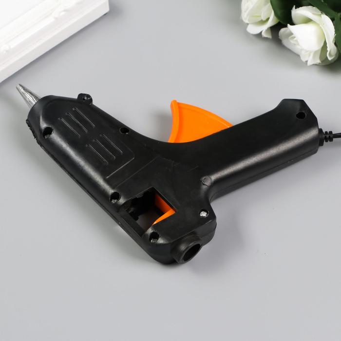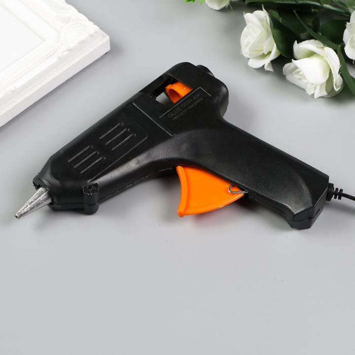 Клеевой пистолет для творчества не рассчитан на долгие работы. Подходит для приклеивания декора, маленьких деталей, склеивания бумаги. Рекомендуем держать его включённым максимум 3–5 минут, затем выключать до полного остывания. Для долгих работ лучше использовать профессиональный клеевой пистолет.