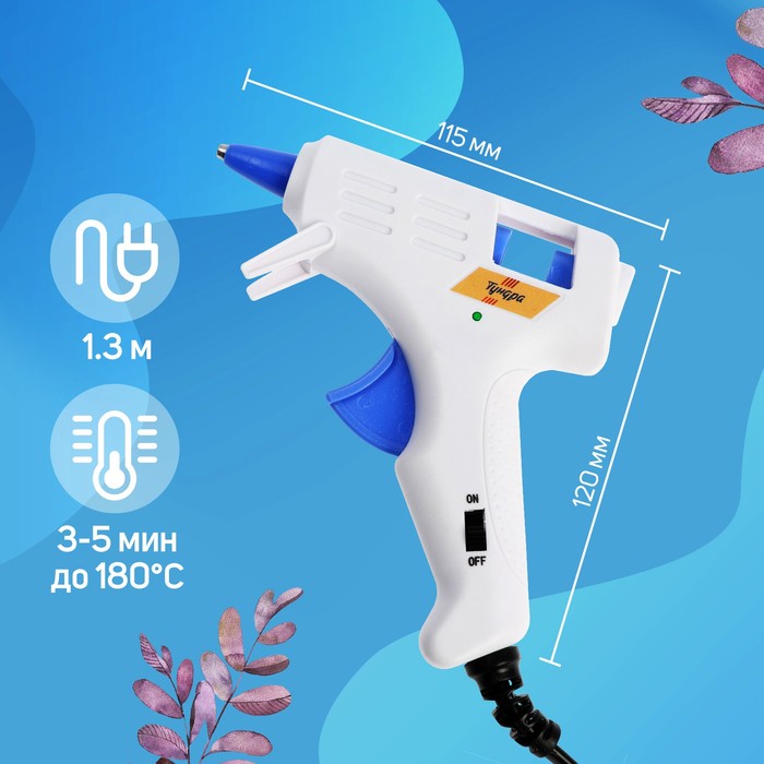 Клеевой пистолет ТУНДРА предназначен для склеивания различных материалов горячим клеем. Инструмент имеет широкую сферу применения.