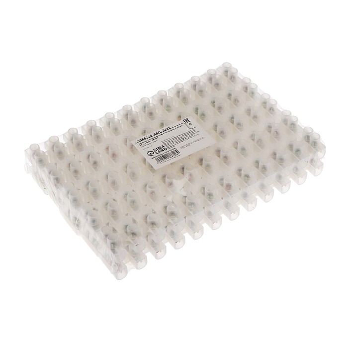 Клеммная колодка винтовая, 12 секций, 6-16 мм², 30 А, полиэтилен, белый, набор 10 шт.
