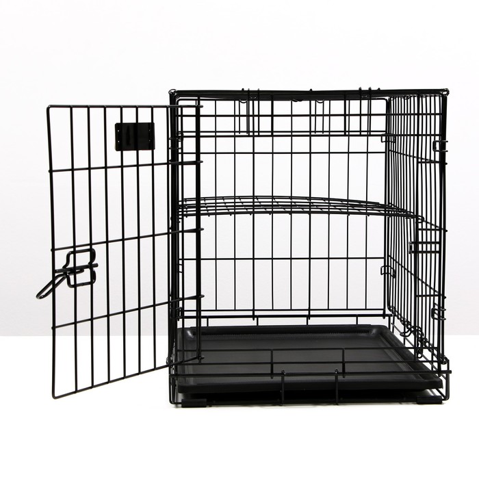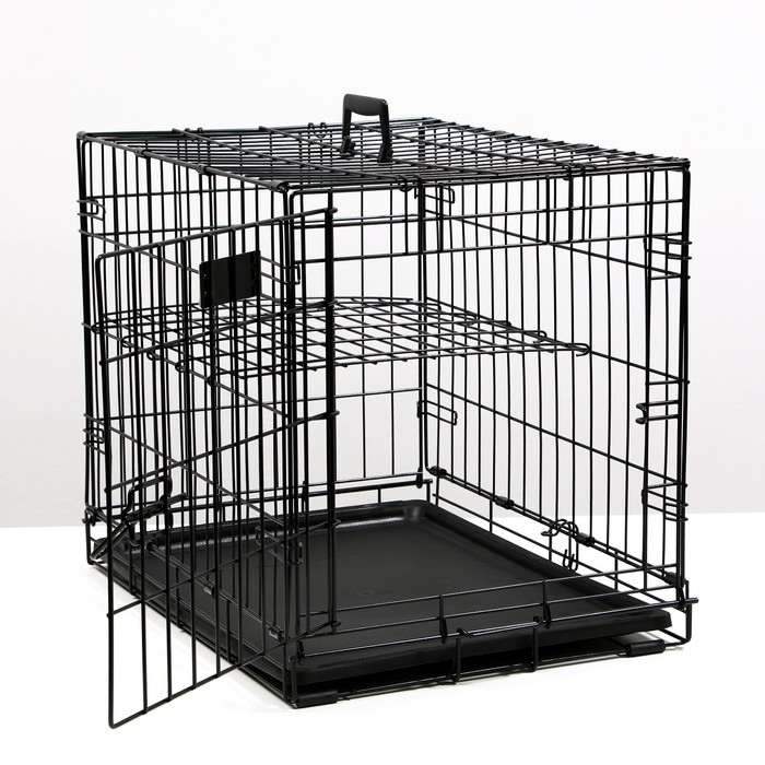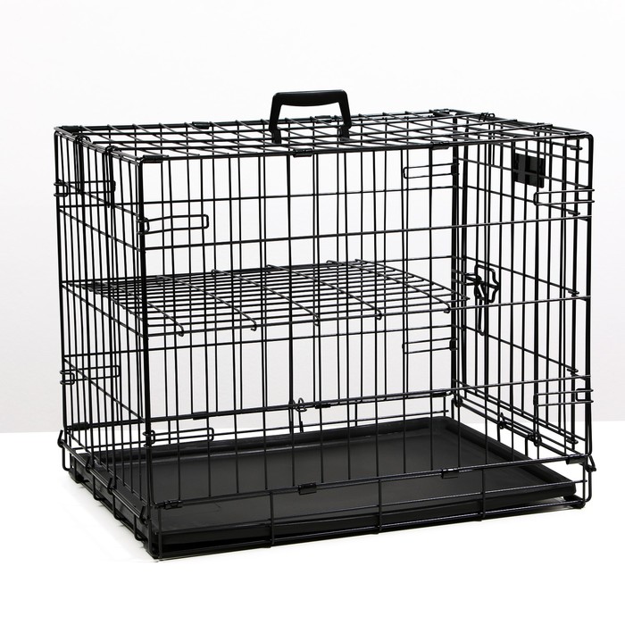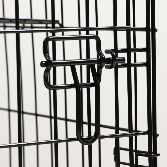 Клетка выполнена из качественного металла, обеспечивающего безопасность собаки и хозяина. Двойной замок-задвижка закрывается и снаружи, и изнутри.