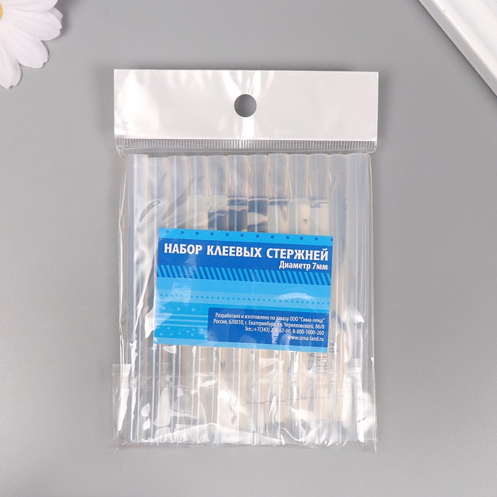 Клей для клеевого пистолета в стержнях прозрачный d=7 мм l=10 см (набор 12 шт.)