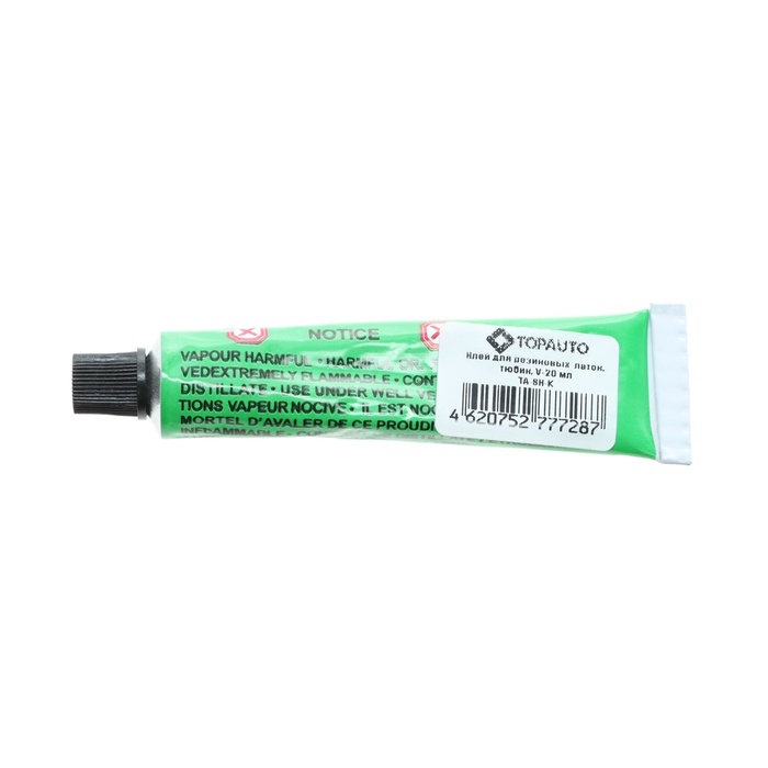 Клей для резиновых латок Topauto – это высококачественный состав, предназначенный для прочной и быстрой фиксации латок на поврежденной поверхности шины. Данный клей гарантирует надёжное склеивание латок из резины, благодаря чему обеспечивается безопасность и комфорт при вождении автомобиля.
